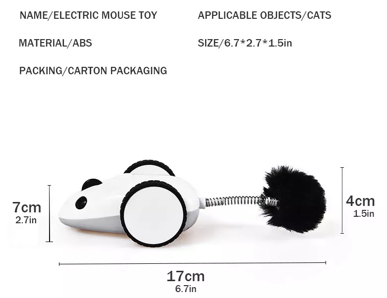 This automatic electronic mouse toy simulates irregular movements to awaken your cat’s natural hunting instinct. With rotating motion and a swinging feather, it keeps your cat engaged and active for hours.