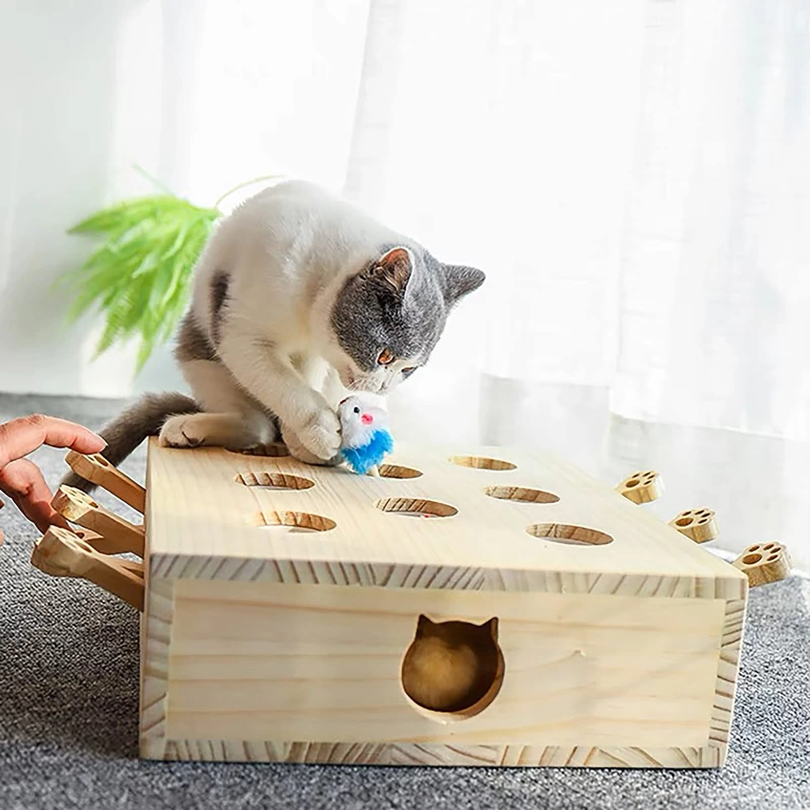 Whack A Mole Solid Wood Box – Interactive Cat Toys